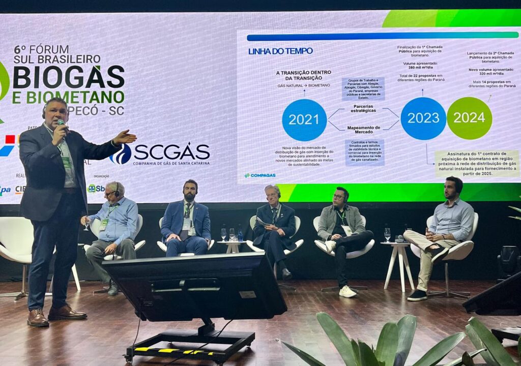 A Compagas (Companhia Paranaense de Gás) anunciou nesta terça-feira (16) durante o 6º Fórum Sul Brasileiro de Biogás e Biometano, em Chapecó (SC), seu plano de distribuir até 15% de biometano por meio das suas redes de gás canalizado até 2026. O objetivo é integrar a rede de distribuição às principais áreas produtoras de biometano, para viabilizar o escoamento do combustível renovável por meio de dutos, ampliando a capacidade de expansão da utilização do gás renovável.