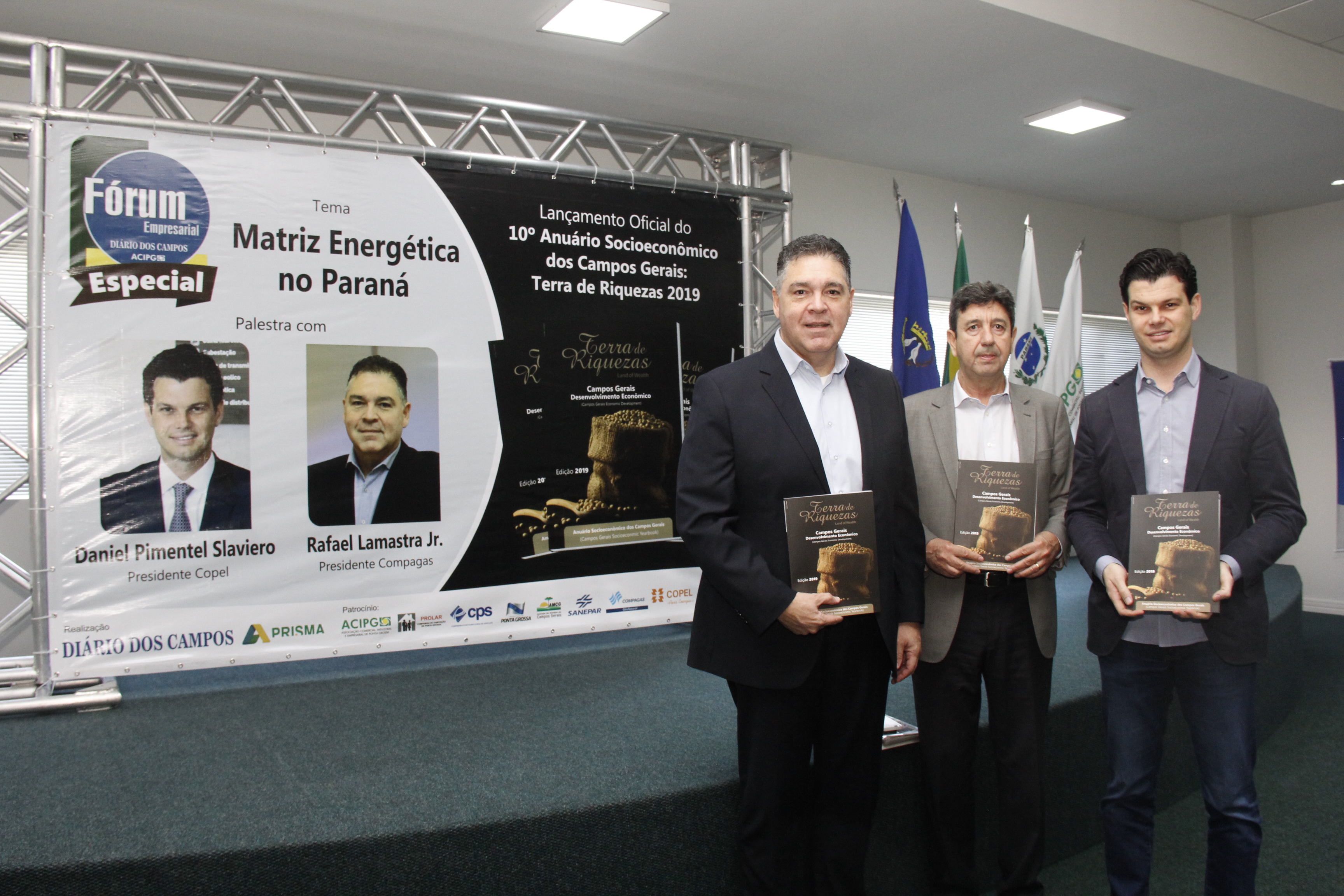 Com o objetivo de apresentar questões relacionadas à matriz energética do Estado do Paraná e a importância do gás natural encanado o para o desenvolvimento dos municípios, o diretor-presidente da Companhia Paranaense de Gás (Compagas), Rafael Lamastra, participou, nesta sexta-feira, 4 de outubro, da edição especial do Fórum Empresarial em Ponta Grossa. O evento, que também contou com apresentação do presidente da Copel, Daniel Pimentel Slaviero, foi realizado na Associação Comercial, Industrial e Empresarial de Ponta Grossa (ACIPG) e reuniu cerca de 100 pessoas, entre empresários e lideranças da região.